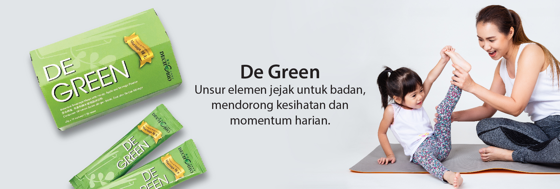De Green mengandungi moringa, rumput gandum, ekstrak teh hijau, madu, ekstrak biji anggur dan serbuk epal untuk membekal nutrien harian yang diperlukan oleh badan anda, ia adalah minuman hijau yang sihat dan selamat diminum untuk sekeluarga!